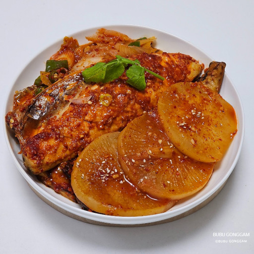 - 고등어를 무, 감자, 양파 등과 함께 매콤한 양념에 졸여 먹으면 밥반찬으로 좋습니다. 매운맛을 조절하여 가족 모두가 즐길 수 있는 요리입니다.
