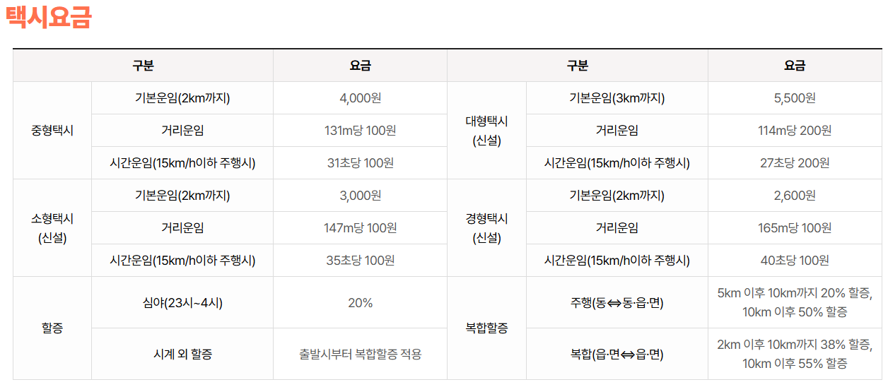 - 추가 거리 요금: 10km 이후는 50%의 추가 요금