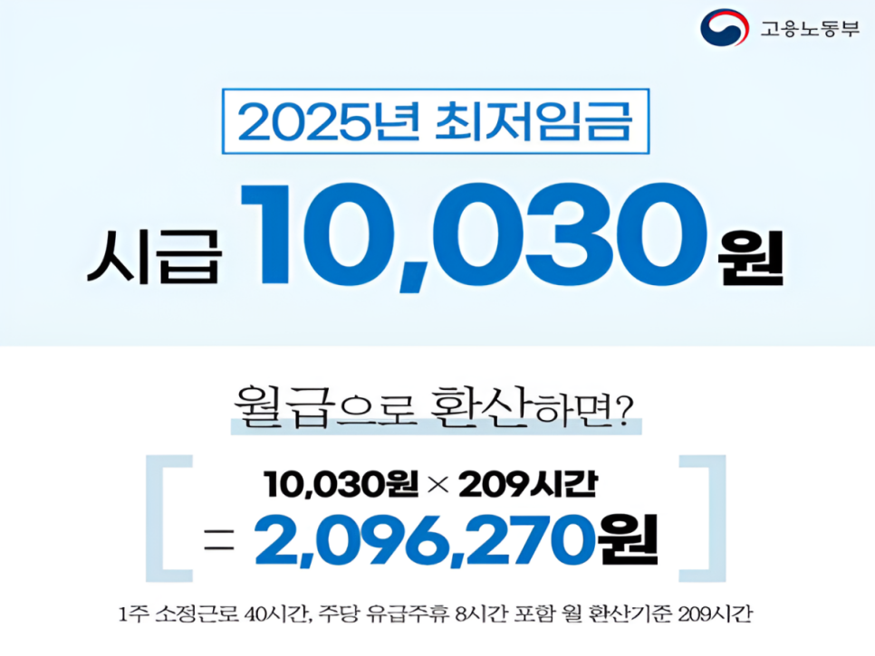 2025년 최저월급, 최소 209만원