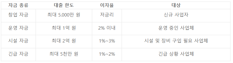 - 주요 혜택: 낮은 금리, 유리한 상환 조건, 맞춤형 지원